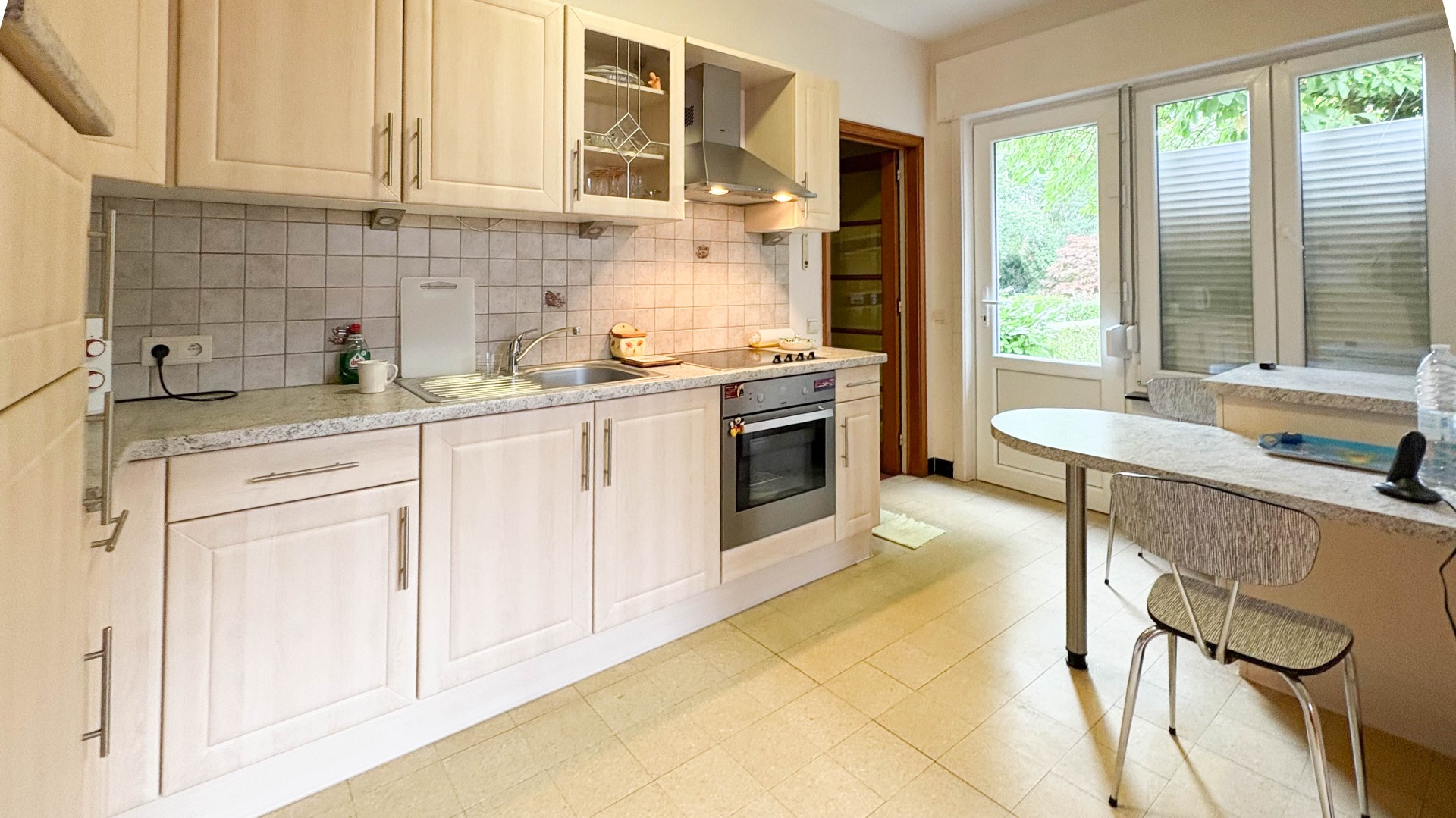 Les châssis sont en PVC double vitrage (à l'exception du hall et de l'arrière cuisine).